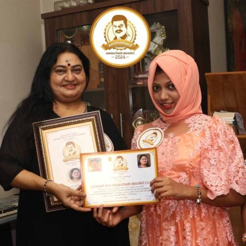 She received special recognition at Bahadur Smrithi 2025, Milestone Super Sundari, and the Kalabhavan Mani Memorial Committee Awards, where she had the privilege of presenting awards to celebrated film stars Mohanlal, Bindu Panicker, and Jojo George. Afrin was also honored at the P. Jayachandran Music Foundation inauguration by renowned director Kamal. Each honor highlights her journey of grace, courage, and inspiration that continues to touch lives across Kerala.